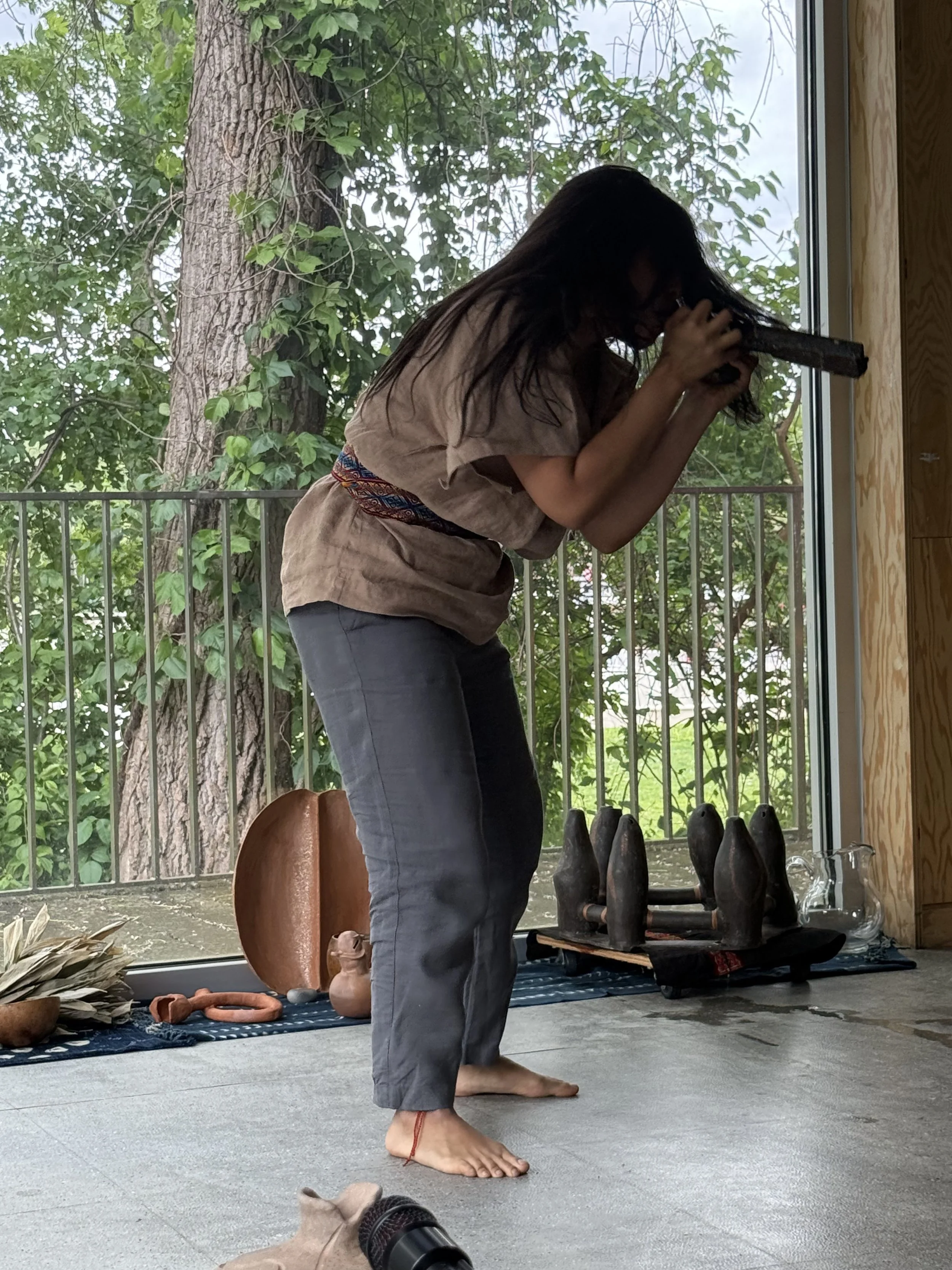 𝐓𝐈𝐍𝐊𝐔𝐘 is a live performance and an exhibition by the artist Koyoltzintli funded by an Anonymous Was a Woman Environmental Art Award and Soon is Now with the support of The Jerome and Marlene Brody Foundation. Koyoltzintli's handmade sound objects, including replicas of pre-Columbian artifacts that have not been sounded in over a millennia, were played in a performance that unfolds across seven geological acts.This sonic meditation encourages us to reflect on humanity’s deep interference with the planet's balance, and to remember how intertwined we are with the earth and all living beings.